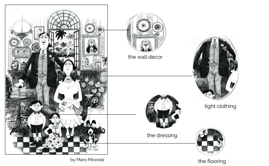 Whereas the scenario in Mario Miranda’s illustration (one on the right) depicts a whole lot of western influence. Here, we can