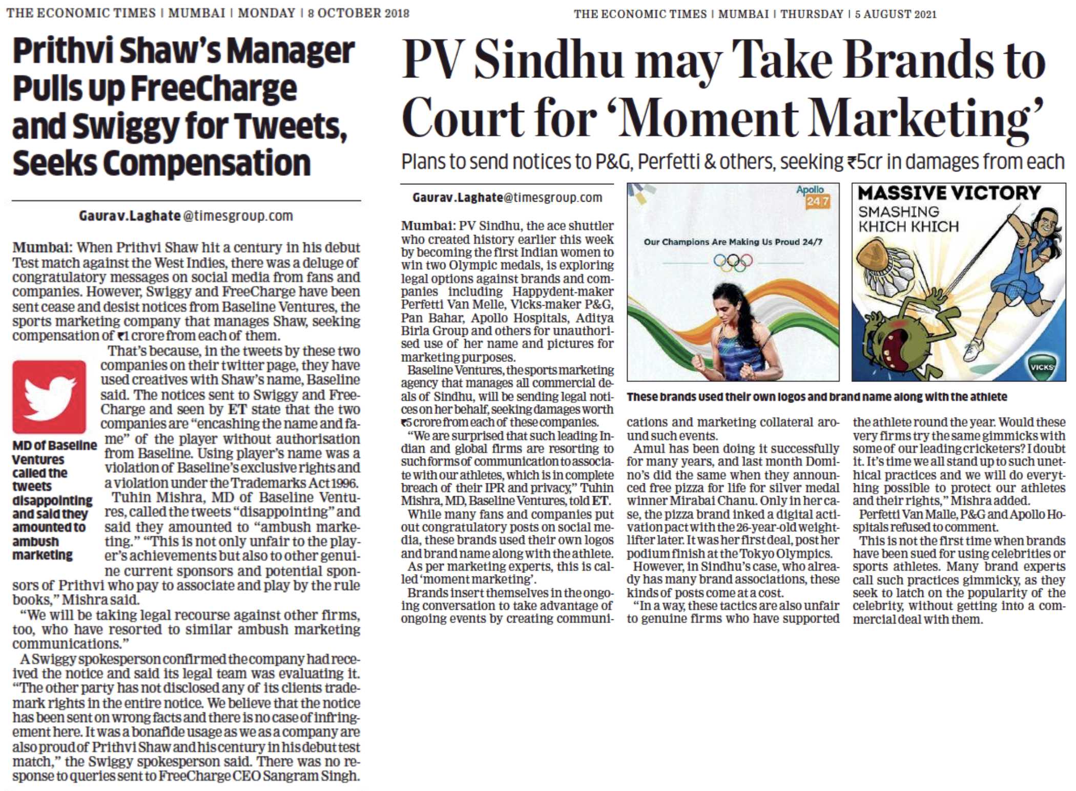 For example, many firms used PV Sindhu’s name and image without permission after she won a bronze medal at the Olympics in Tokyo. In the end, Sindhu had to submit notices to 15 different businesses.