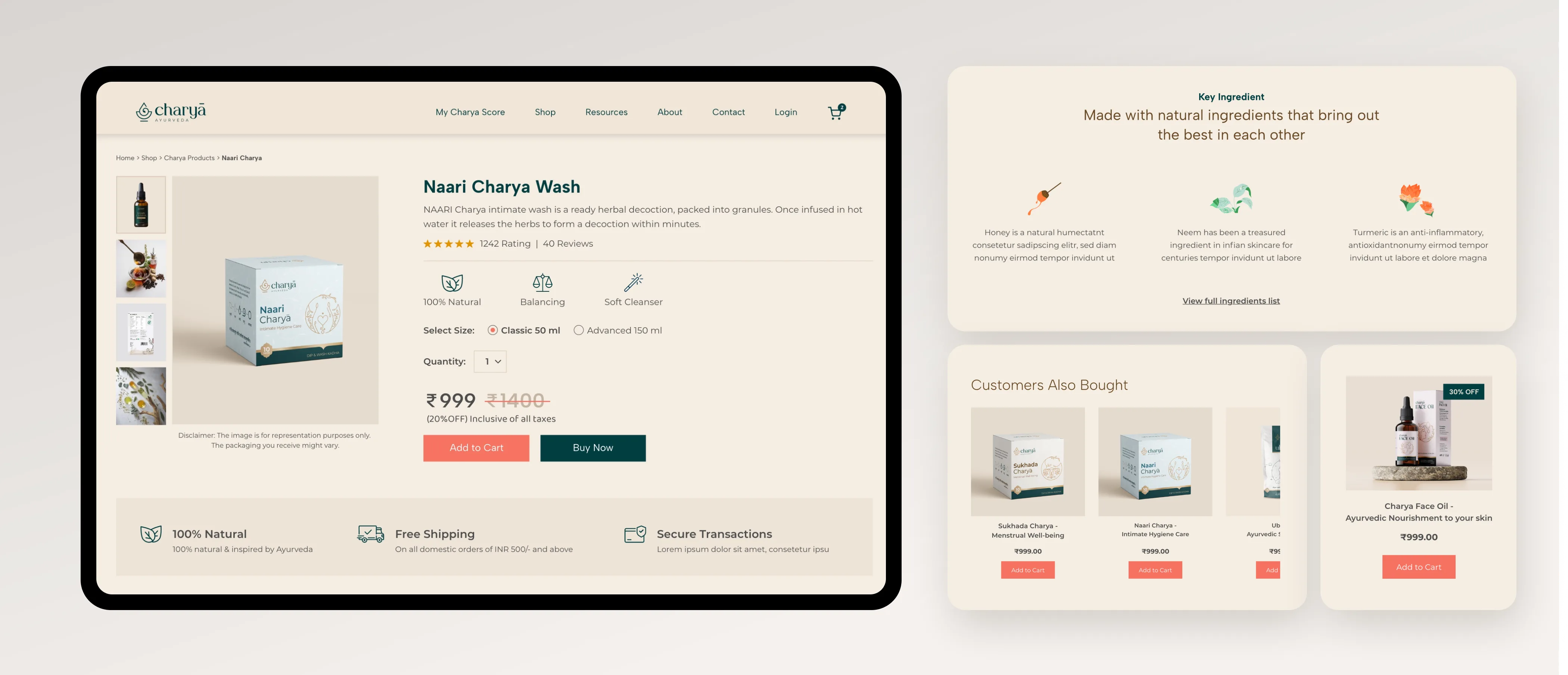 The website is meticulously crafted for a great user experience, aligning with our brand's vision. It focuses on scalability and offers personalized assessments and recommendations. We aim to build a vibrant Ayurveda community with consulting services and an extensive knowledge hub, reflecting our user-centric approach and Chārya Ayurveda's broader vision.