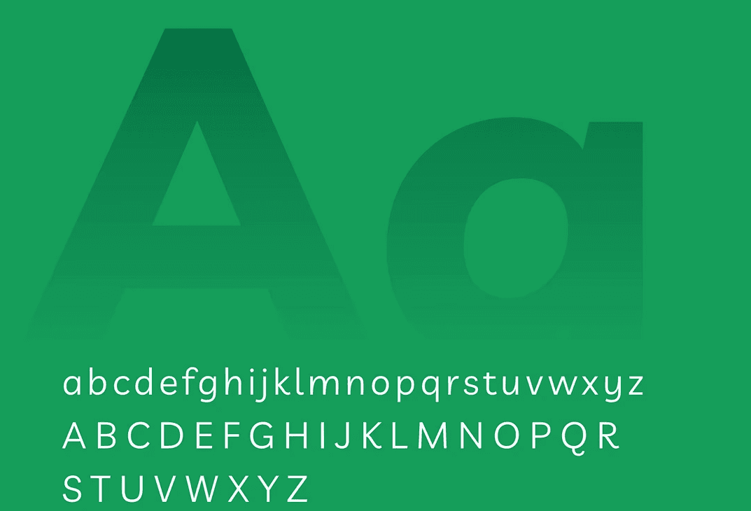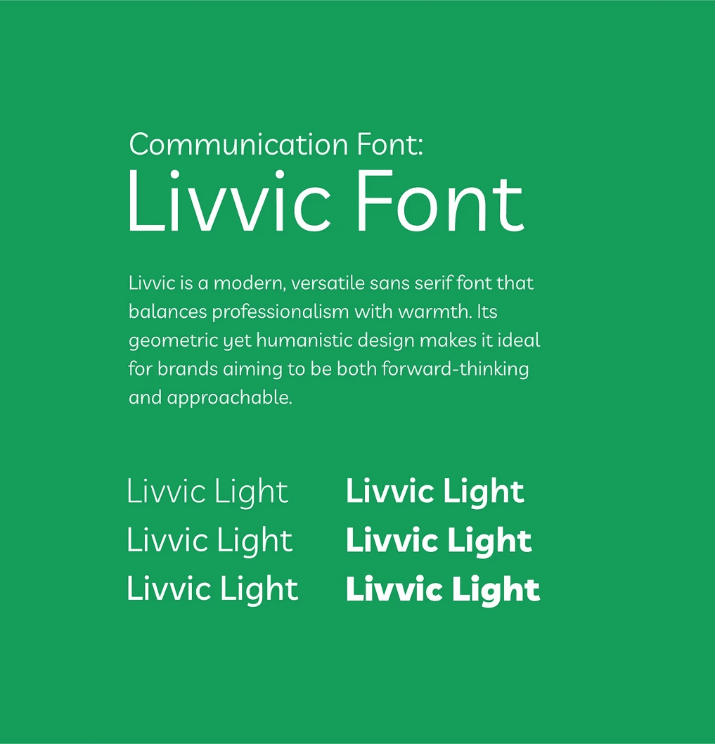 The secondary colours add contrast and flexibility: blue reflects technology and reliability, while the lighter tones bring approachability and support varied communication.