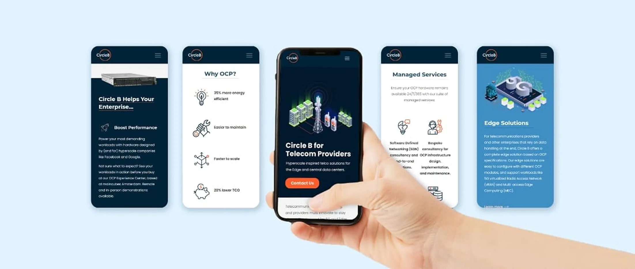 Circle B needed to evolve from a low-visibility, service-driven brand into a distinctive, future-ready identity. It had to build an independent voice while leveraging Taurus Group credibility, simplify complex OCP solutions, stand out globally, build trust across European markets, and align internal teams with a consistent brand vision.