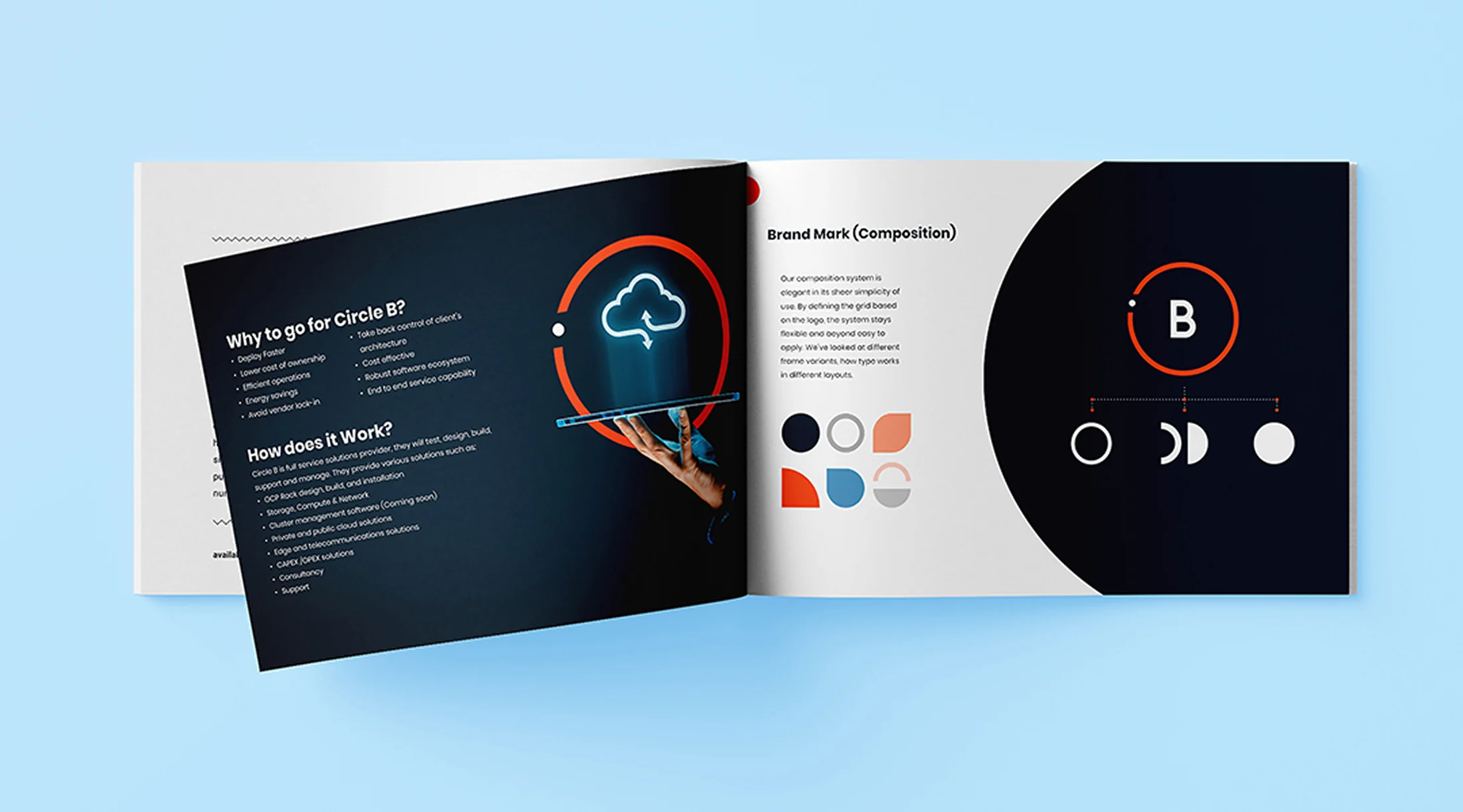 As the brand name itself have the word “Circle” also they cater to OCP which means ‘Open Compute Project’ we came across the concept of “Open”, using the open circle for creating the identity. The circle represents transformation, and collaboration and the open circle represents the open source and sharable approach.