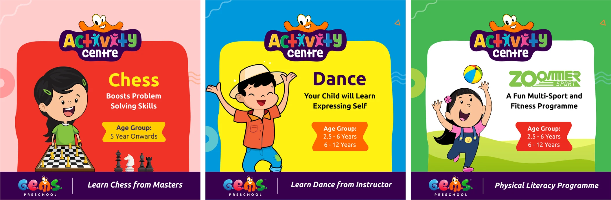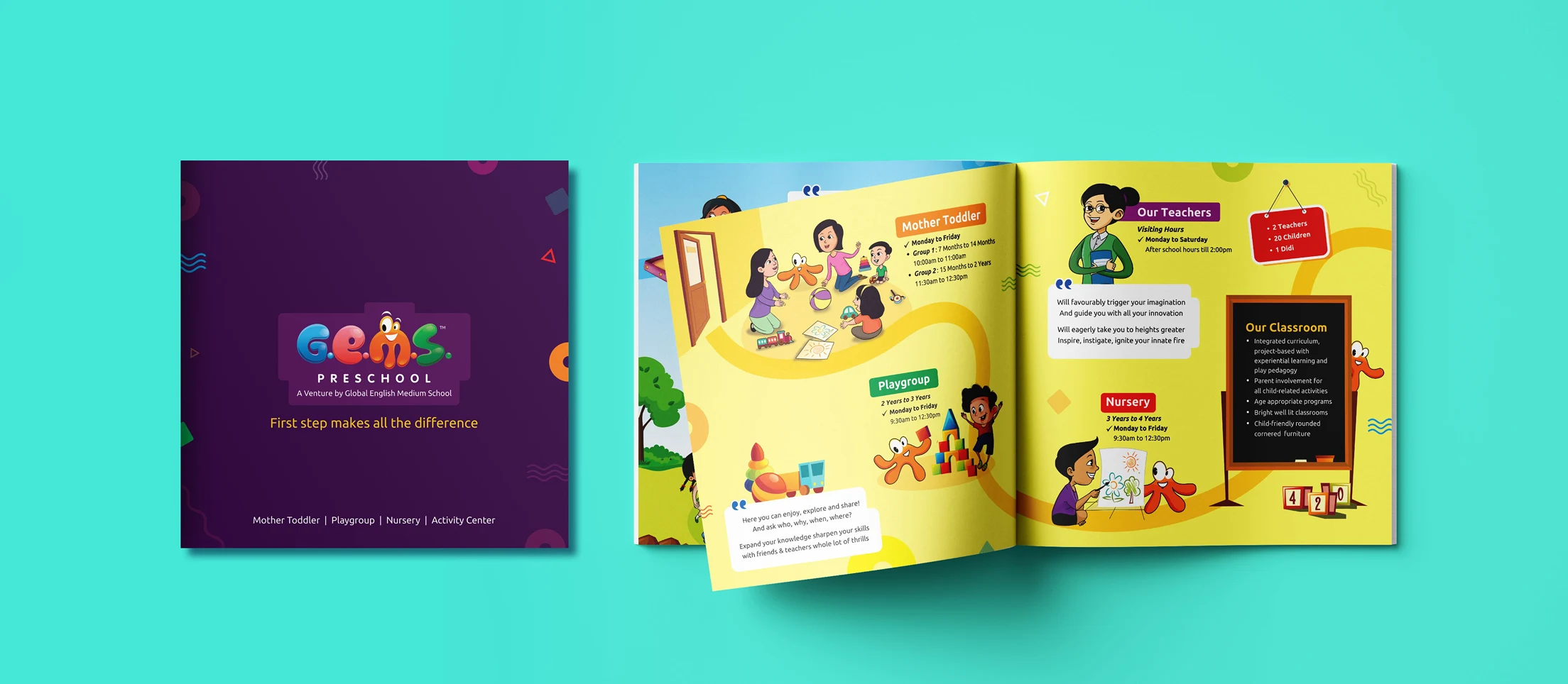 G.E.M.S. Preschool represents Creativity, Growth, Active, Explore, Intelligent, Experimental, Beginning, Fun & Learn. These Attributes Resembles with an Oceanic Animal Octopus -An Intelligent and Creative Animal.