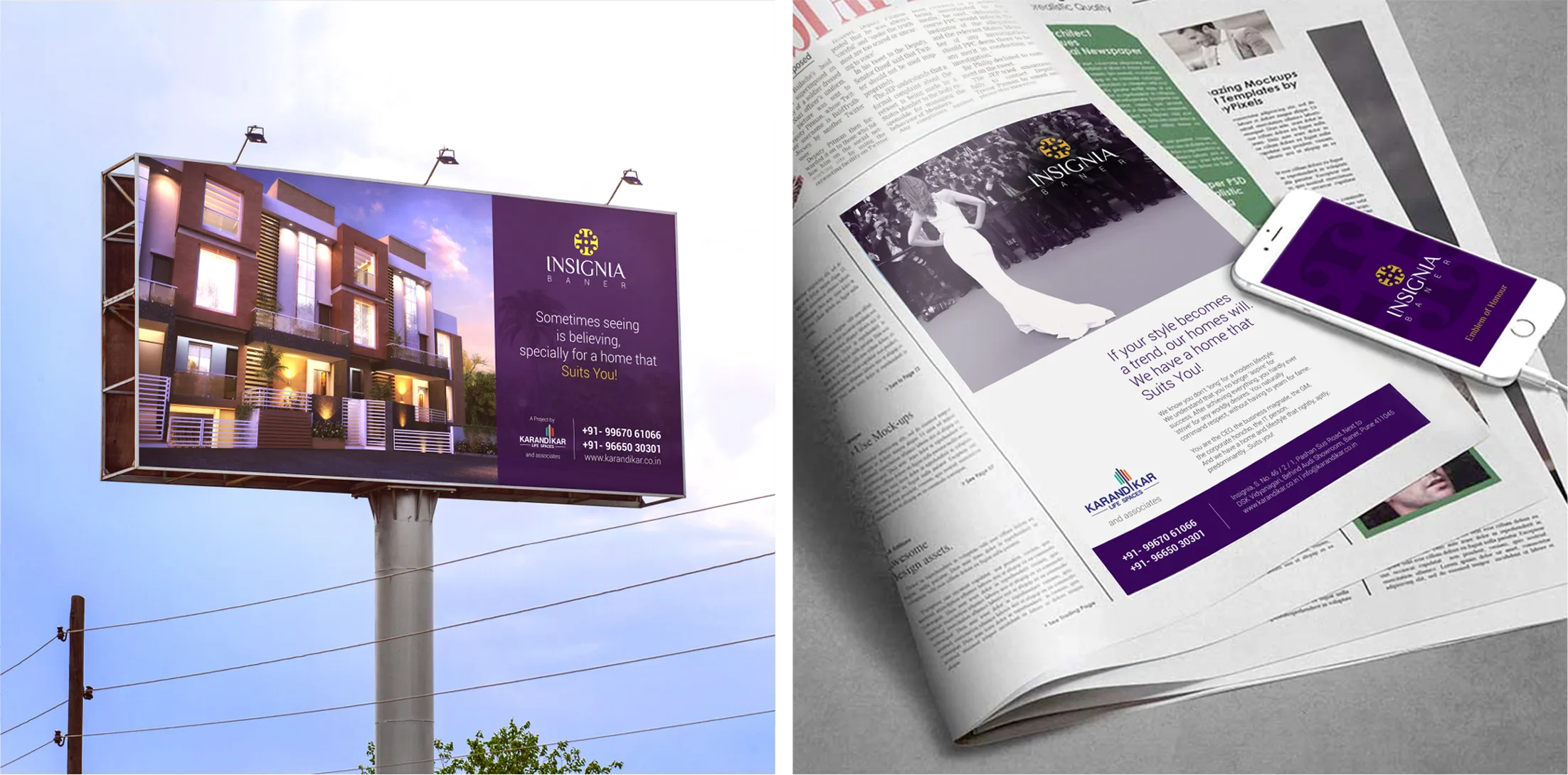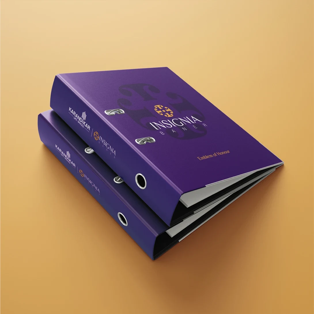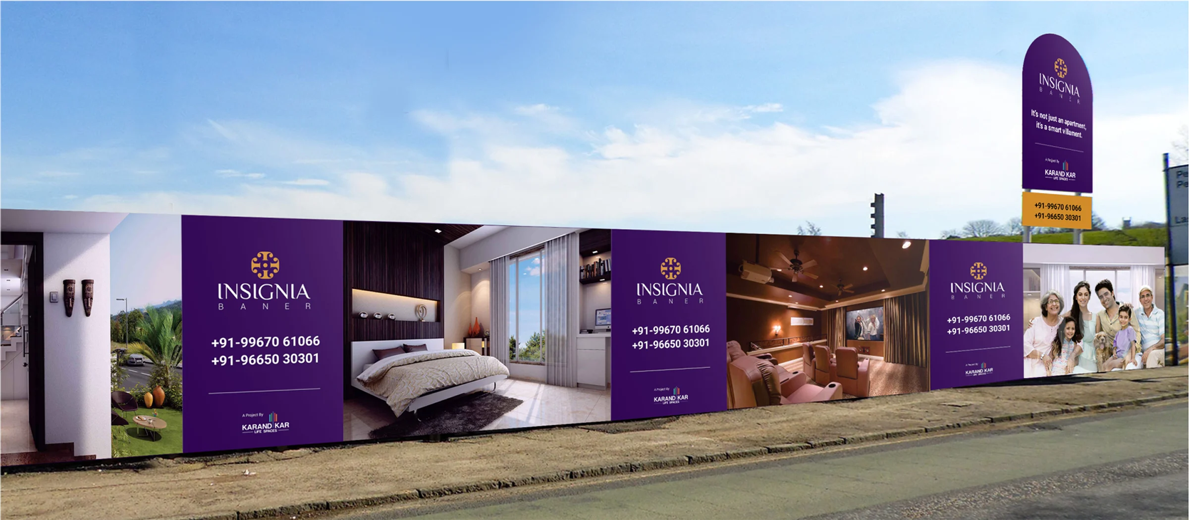 Insignia offers a premium lifestyle with modern amenities in Baner. All communication - brochures, hoardings, standees, site branding, and print ads was designed to highlight its elite appeal, using visually driven creatives to reflect sophistication, aspiration, and a high-class living experience.