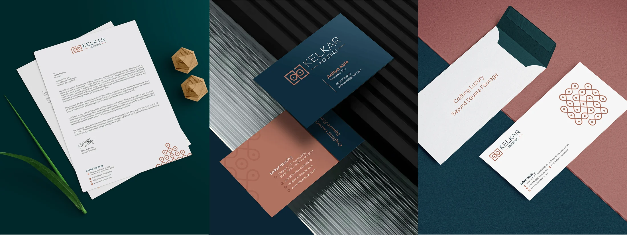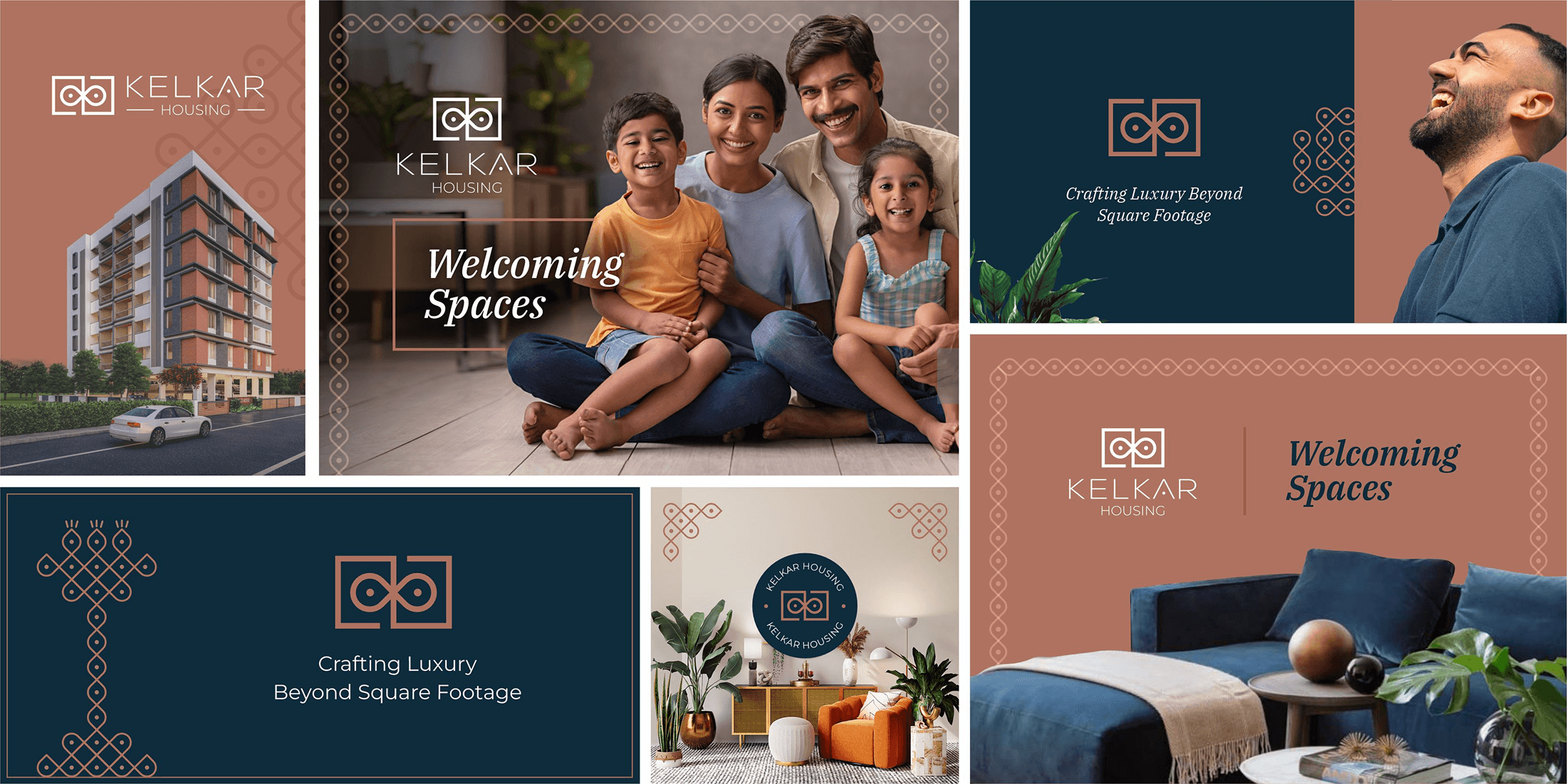 Kelkar Housing is a real estate developer known for thoughtfully designed, premium residential spaces. For the brand, we created a cohesive identity system and extended it across collaterals, site branding, and spatial touchpoints ensuring a consistent, experience-led presence across every interaction.