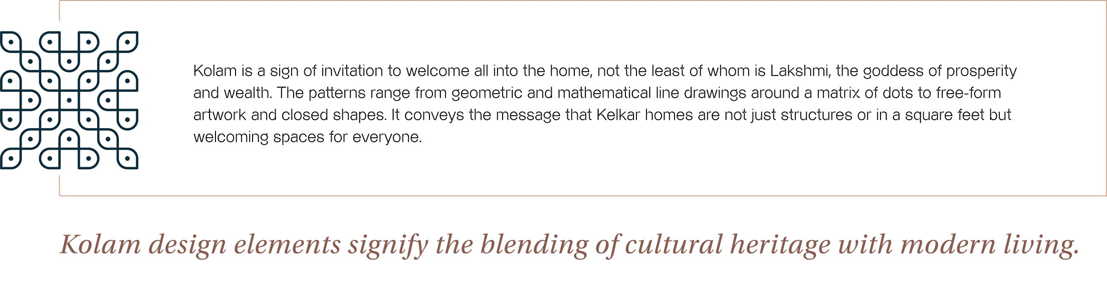 In line with our conceptual framework on Kolam art, we have established several Kolam art elements to enhance the brand's visual language. These intricate Kolam patterns have been integrated into the design of Kelkar Housing's communication materials.