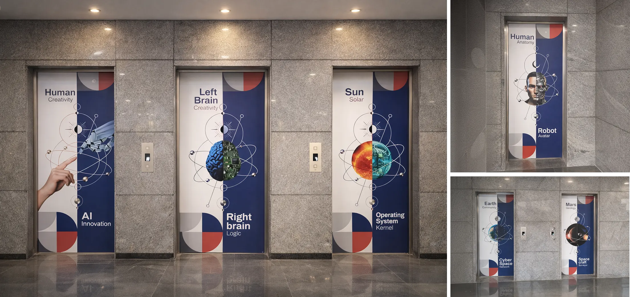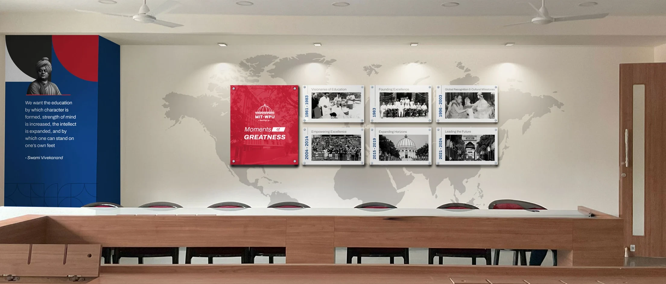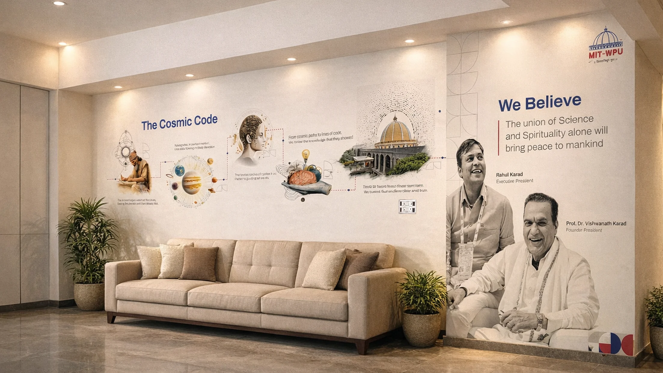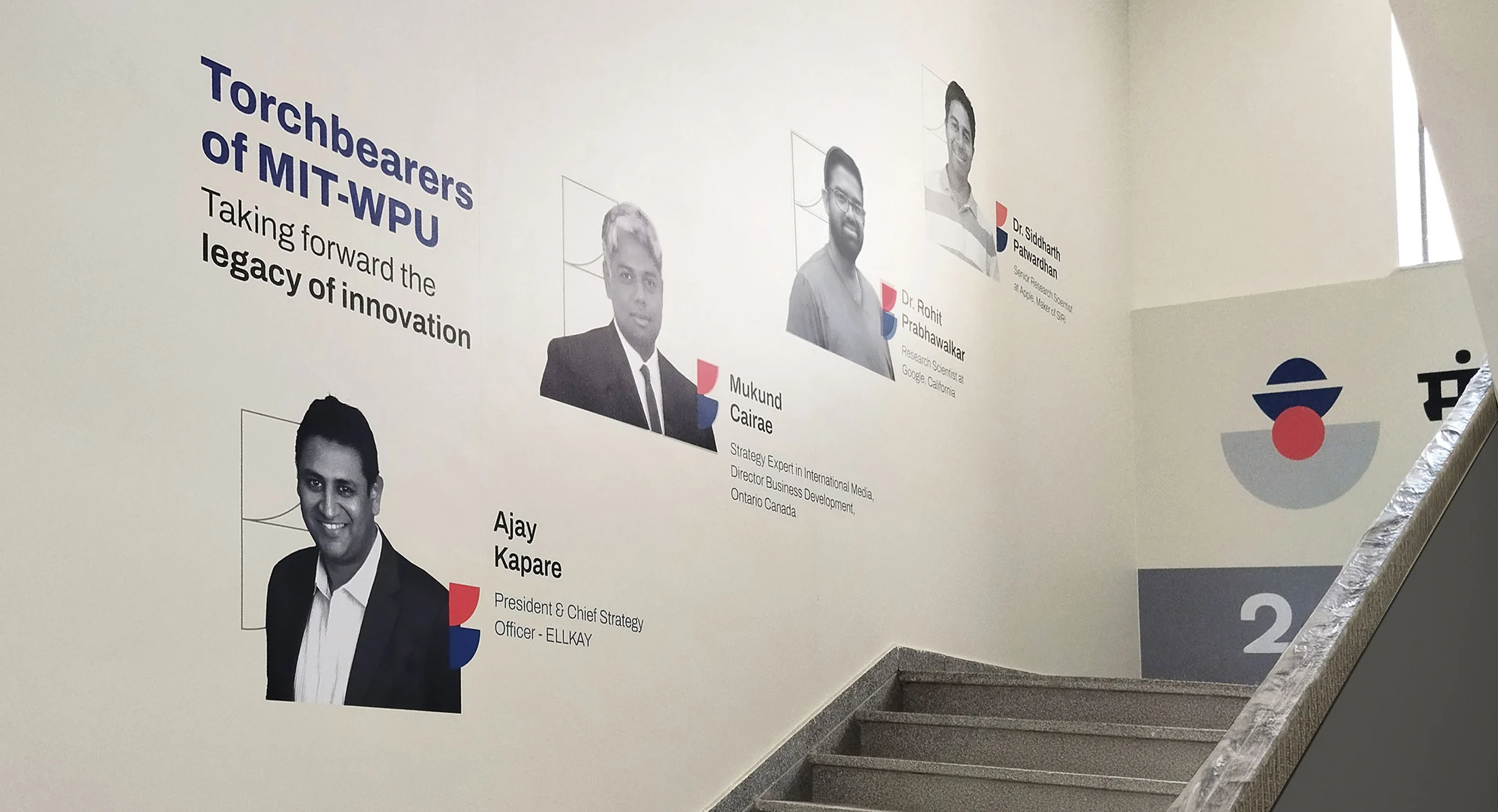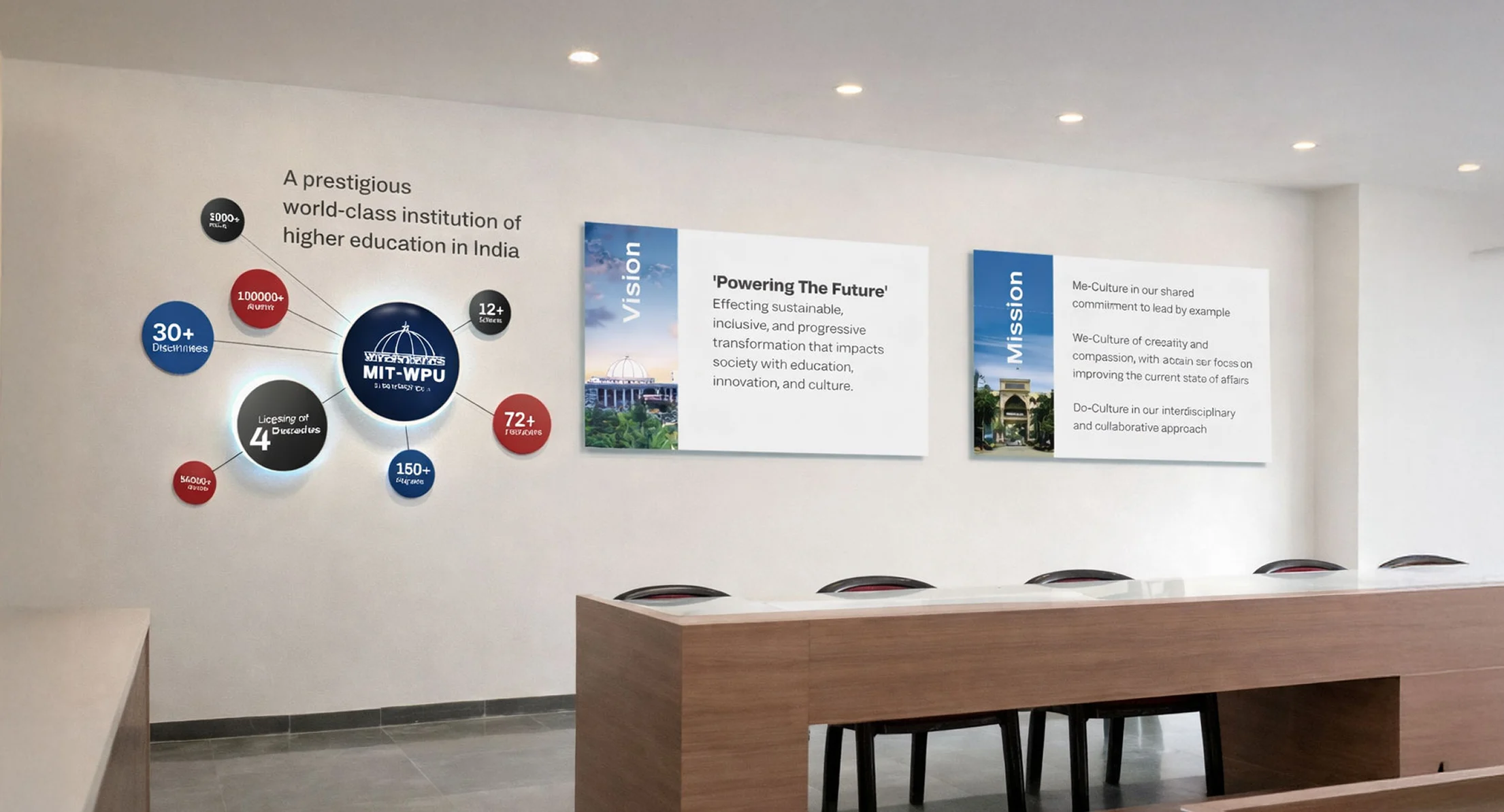 The Vyas Building at MIT-WPU houses the School of Computer Science and Engineering along with the Institute of Artificial Intelligence. It is a space dedicated to disciplines such as Artificial Intelligence, Data Science, Robotics, Software Engineering, and advanced computing technologies. The objective of the project was to develop an internal branding system that transforms the building into a cohesive and engaging environment- one that reflects the spirit of technological innovation while improving spatial navigation and visual identity across the building.