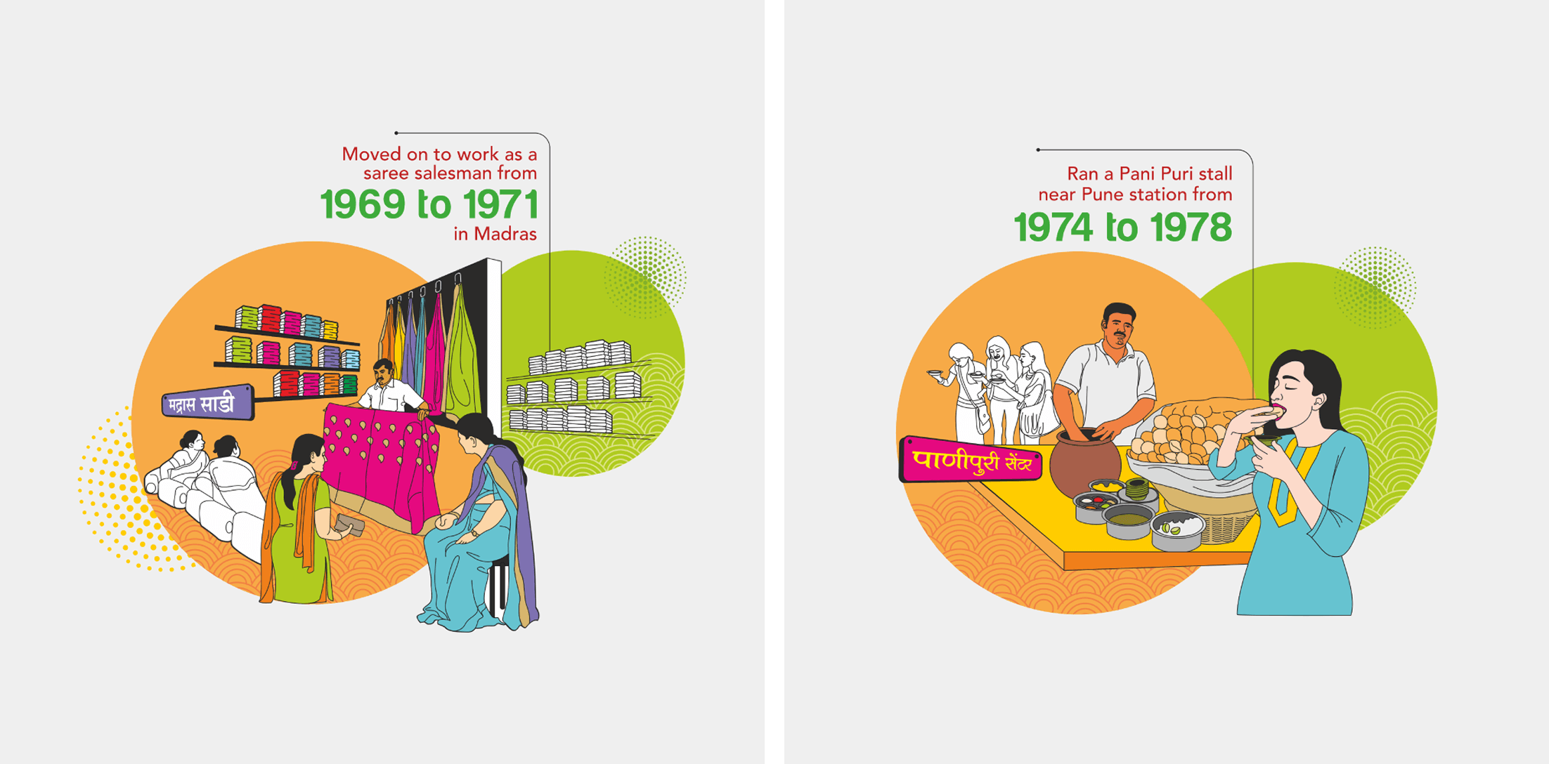 The rebranding of Nandu’s Paratha House included timeline illustrations showcasing Nandukumar’s journey from salesman to foodpreneur. This visual storytelling added depth to the brand, strengthening emotional connection and highlighting the restaurant’s growth and heritage.