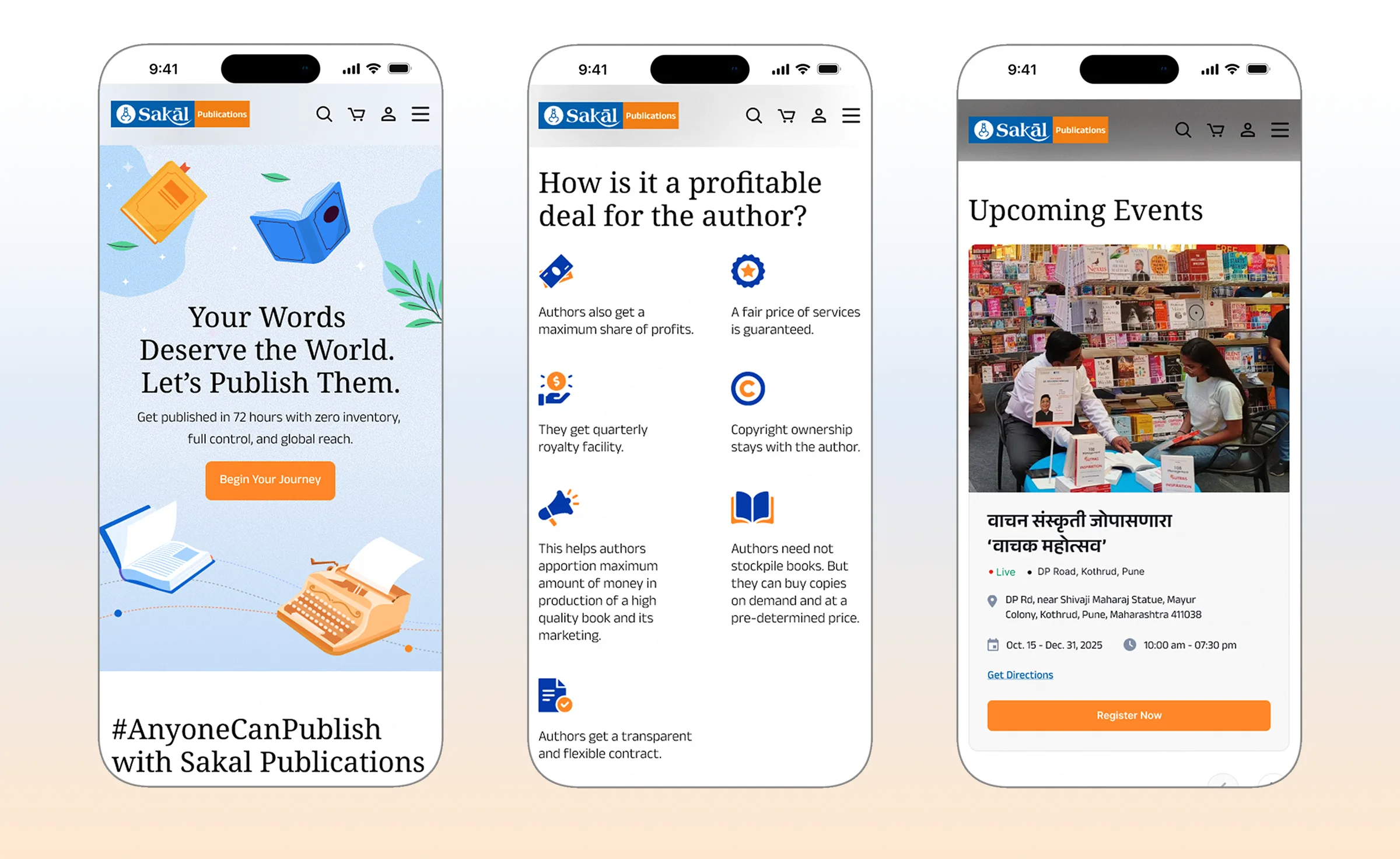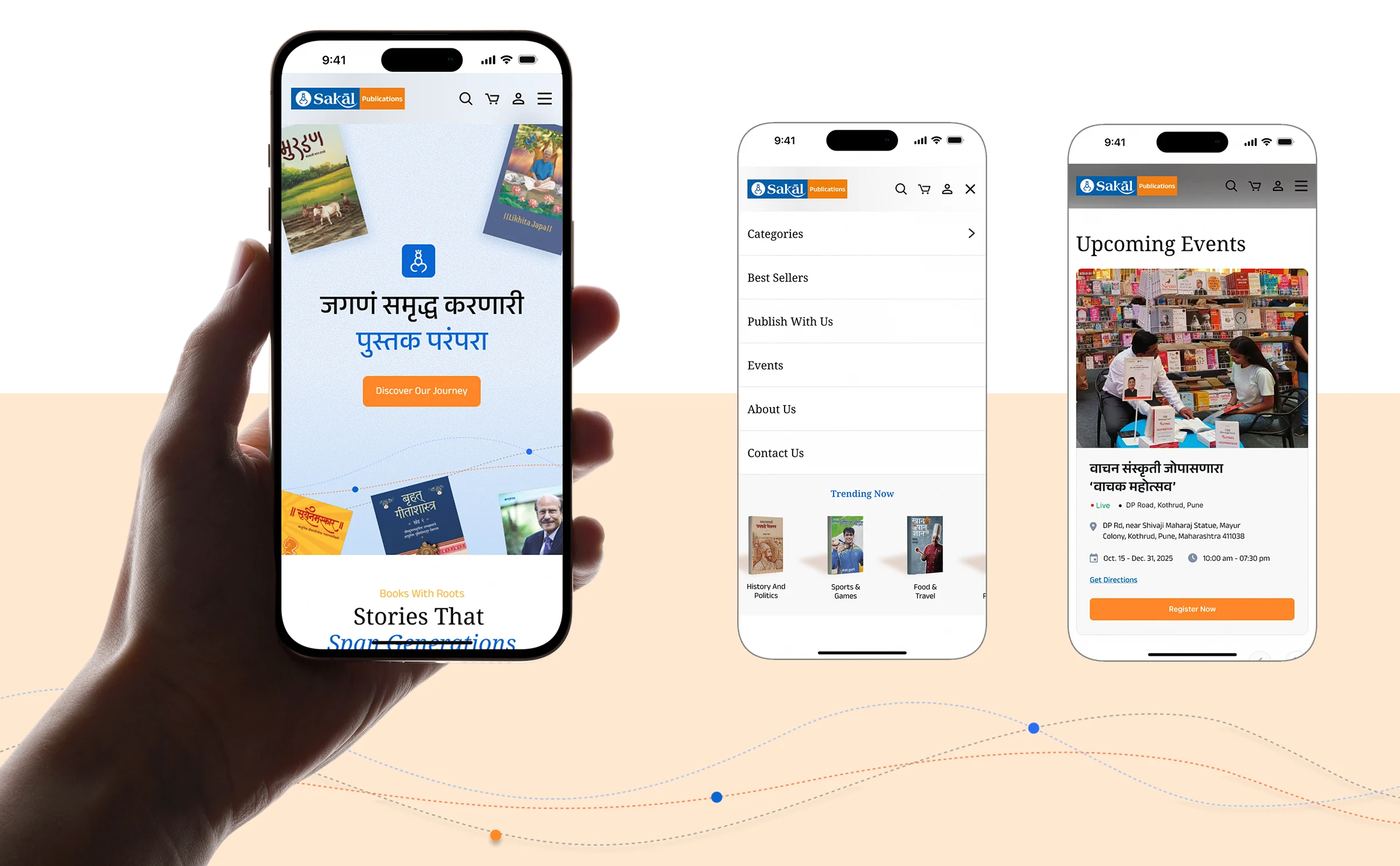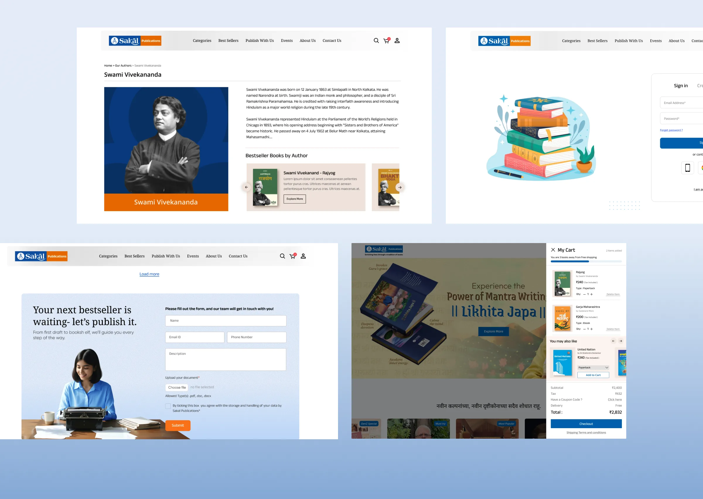 The goal was to transform Sakal Publications into a modern, scalable digital platform. Focus areas included improving navigation, simplifying book discovery, enhancing user experience across devices, and creating a seamless connection between readers, authors, and a diverse catalog.
