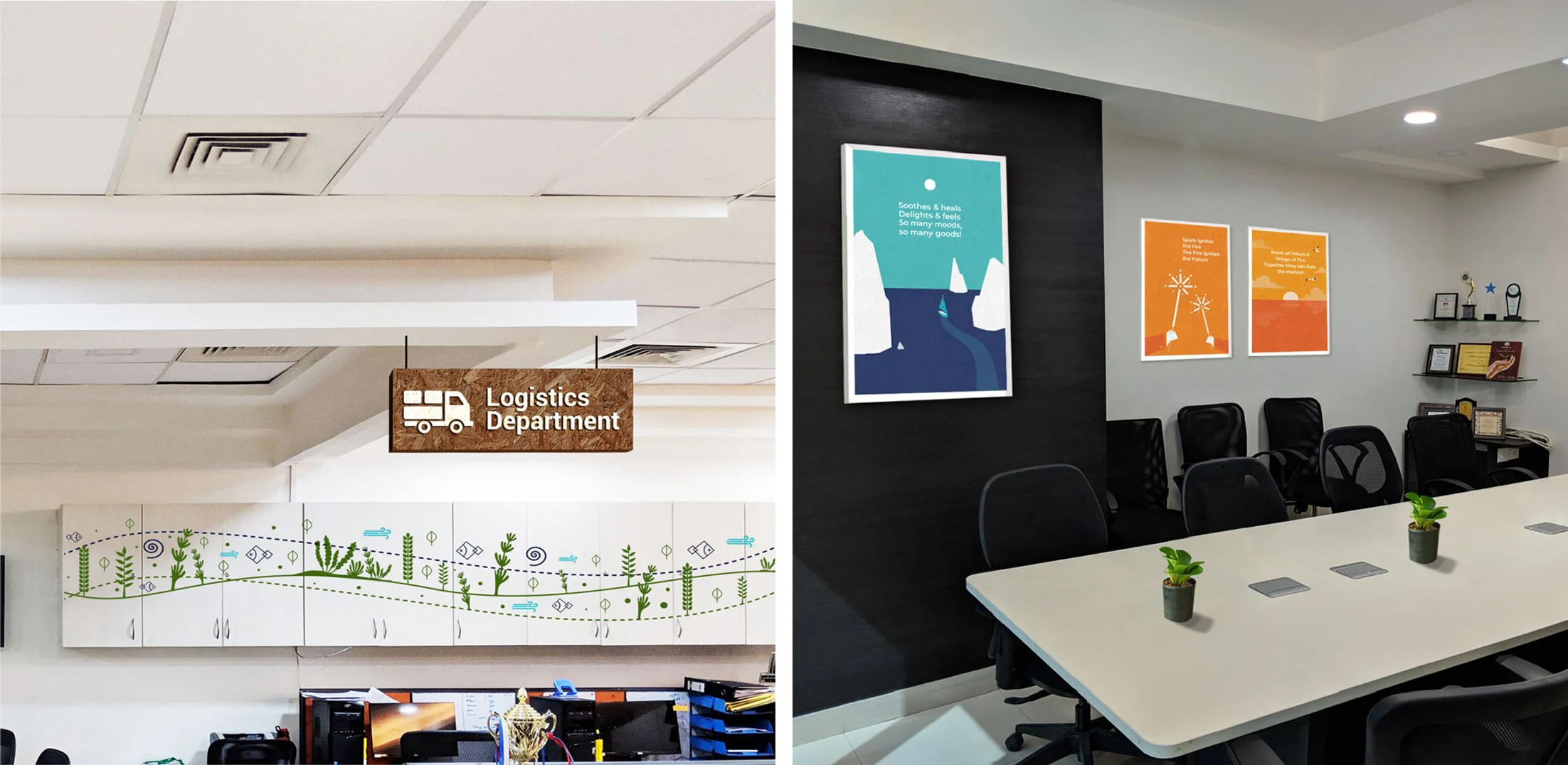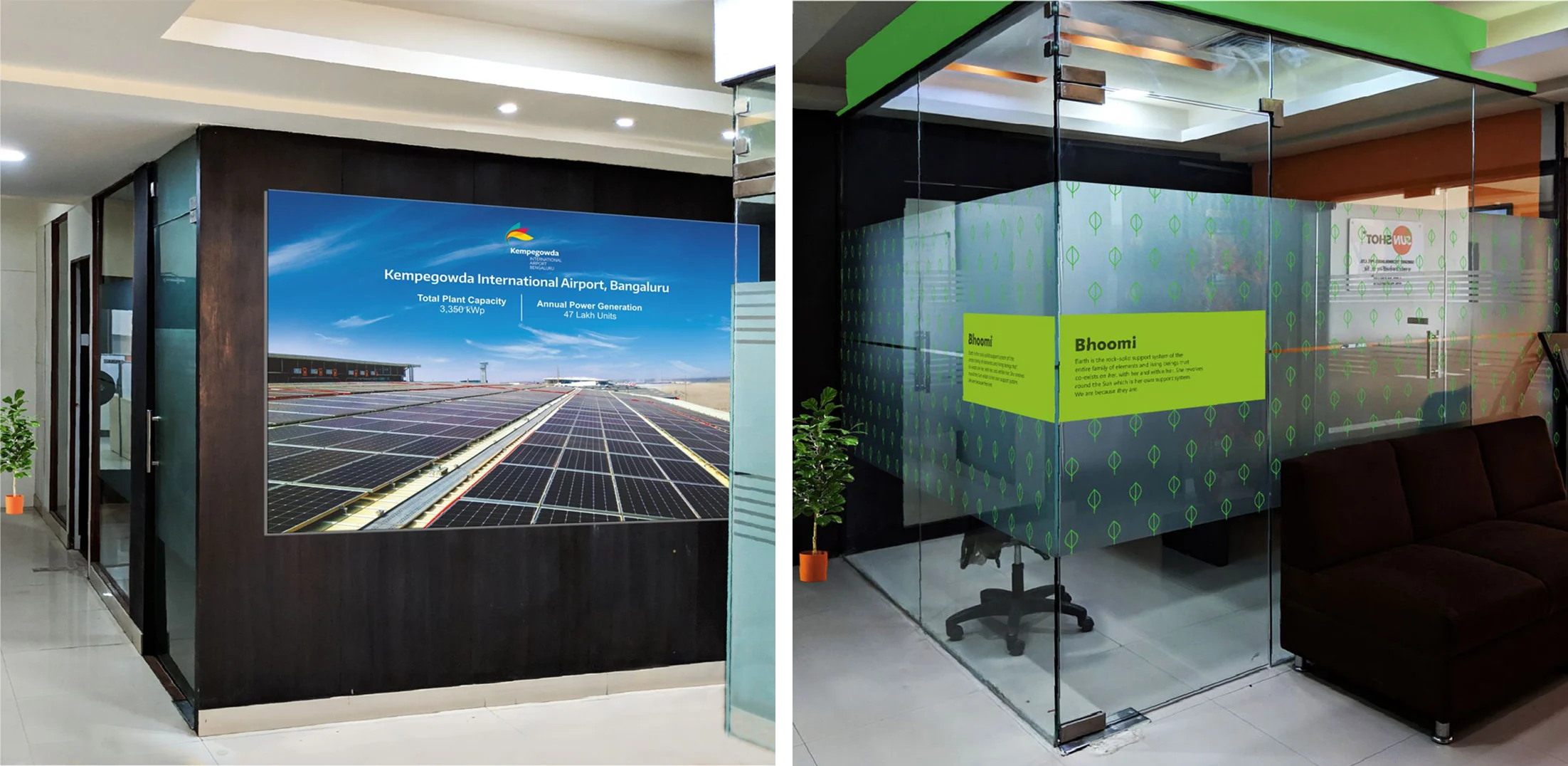 Inspired by Pancha Mahabhuta, Sunshot’s office design assigns each room to one of the five elements. Customized design elements reflect each element’s essence, creating a cohesive, thematic workspace that embodies sustainability and philosophical harmony.
