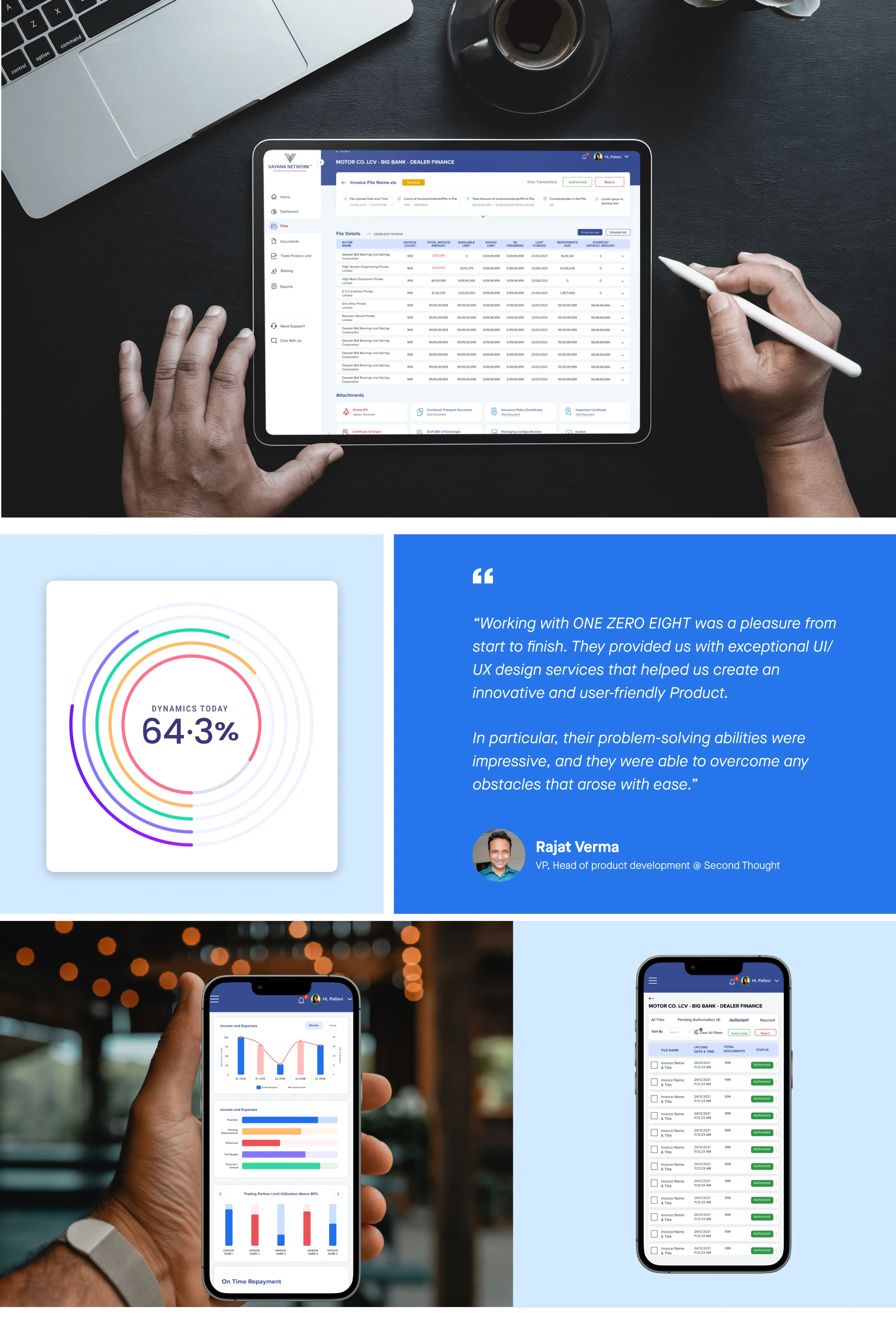 The challenge was to create UI for Vayana’s e-invoicing product. We were bestowed upon with the task of not just creating a good UI but also segregating and concise larger chunks of information into the UI without losing the essence.