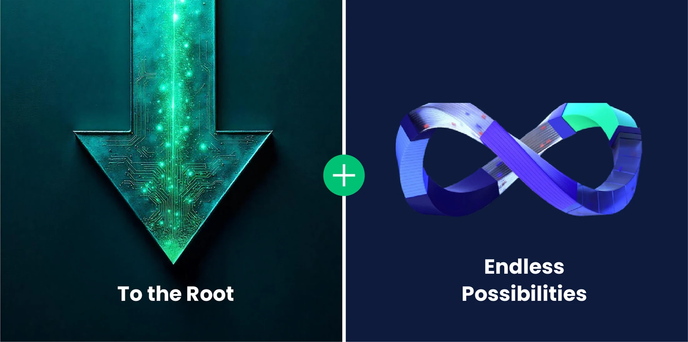 The down arrow symbolizes our approach to root cause analysis and Dur commitment to delving deep into the underlying complexities of challenges, uncovering hidden insights, and identifying areas for improvement.